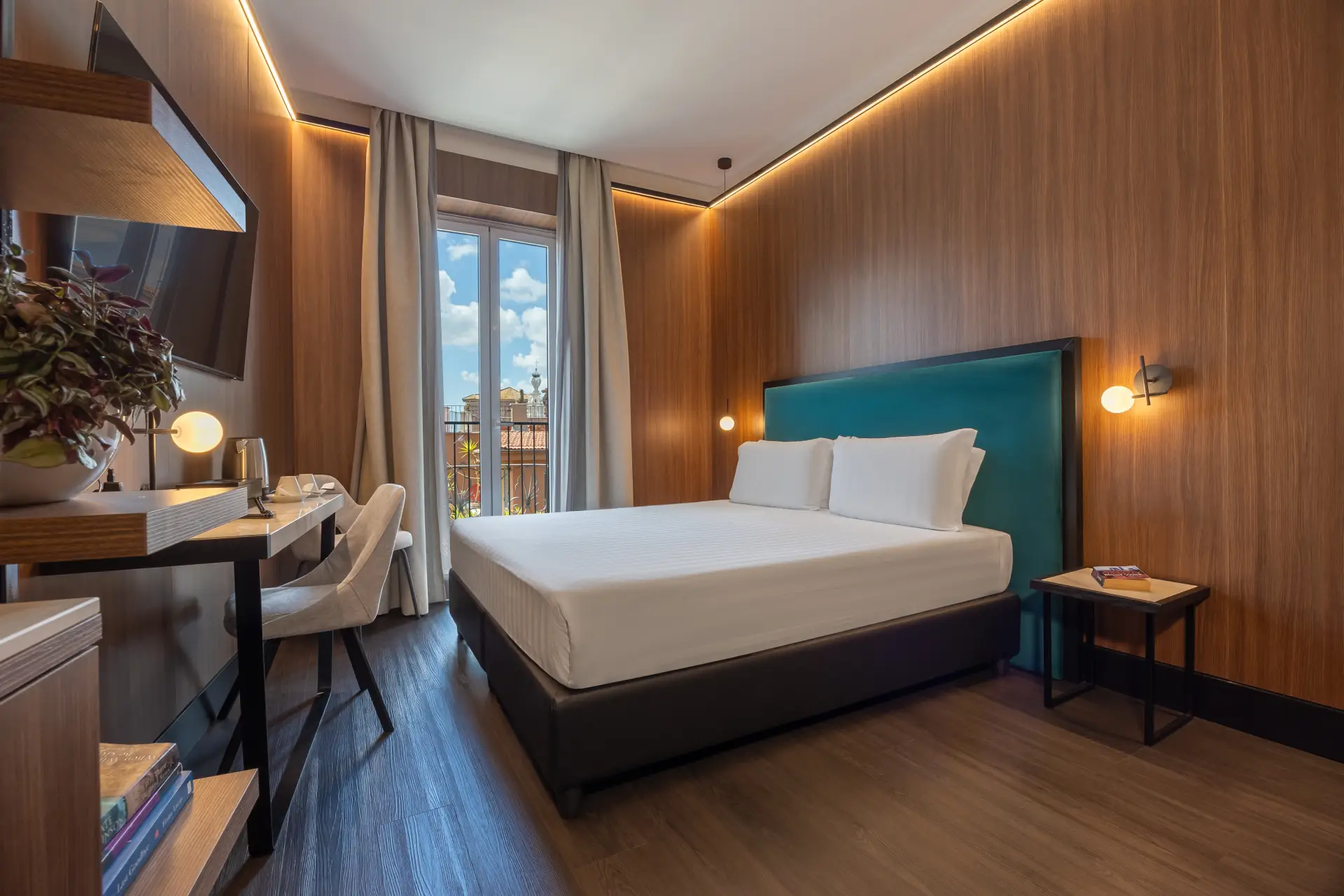 Le Double Superior si distinguono per ambienti più ampi, finiture eleganti e più moderne in un’atmosfera rilassante, ideali per chi desidera un soggiorno ancora più esclusivo nel centro storico di Roma.